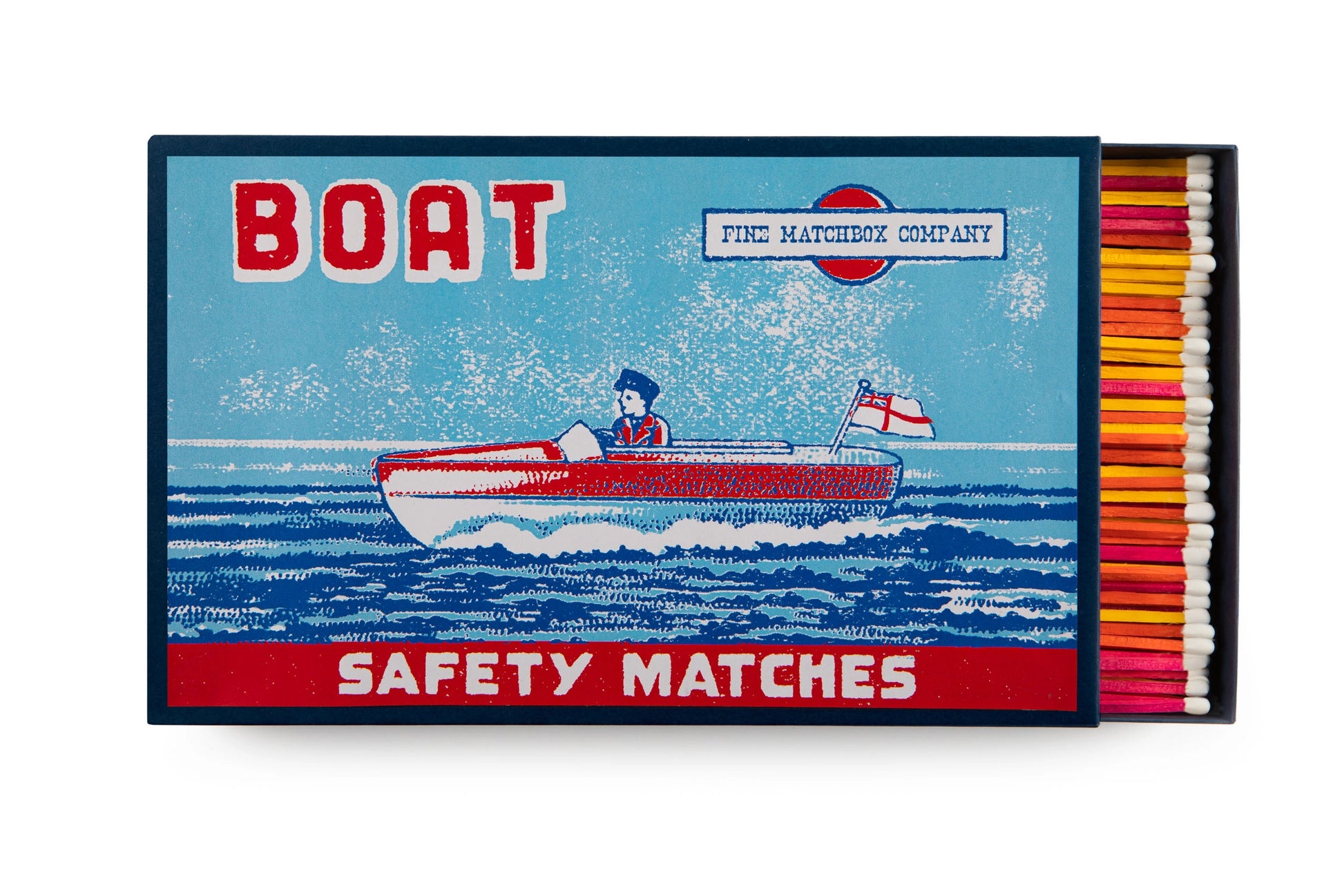 Are you looking for the perfect matches to light your summer BBQ? Well we just might have the ideal giant matchbox for you! This new, vintage inspired, 'The Boat' matchbox is in our giant range meaning you get those longer sticks that will be perfect for sparking the flames of your BBQ. We adore the summery feel that this box gives, with its light blues, contrasting reds and a little boat floating on the waves we don't think you could find a better design for the season.